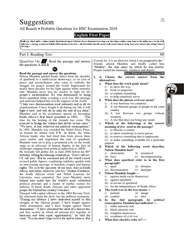 Hsc English 1st Paper Suggestion 2019 All Education Board